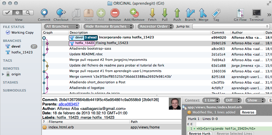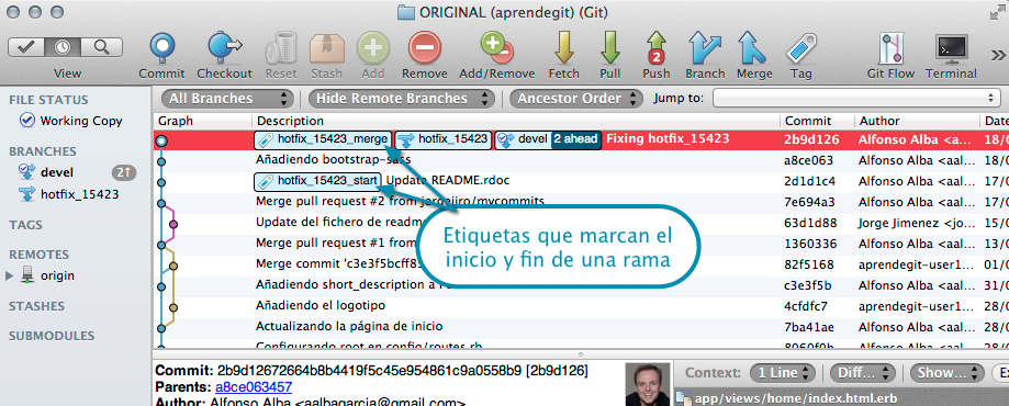 Sin embargo, los ficheros borrados no se actualizan en el índice. En este caso, tendríamos que ejecutar el comando git rm app/assets/images/rails.png: