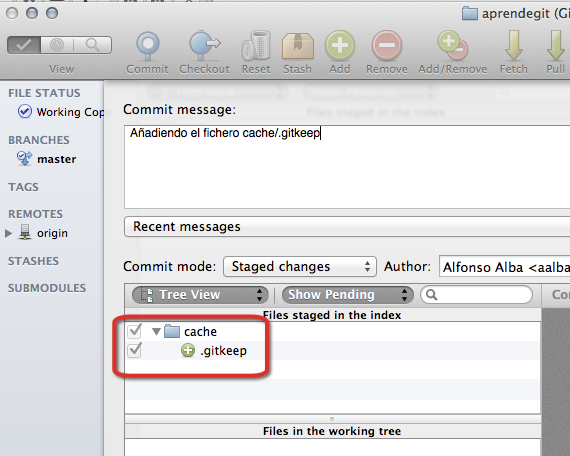 # git commit -m'Añadiendo el fichero cache/.gitkeep